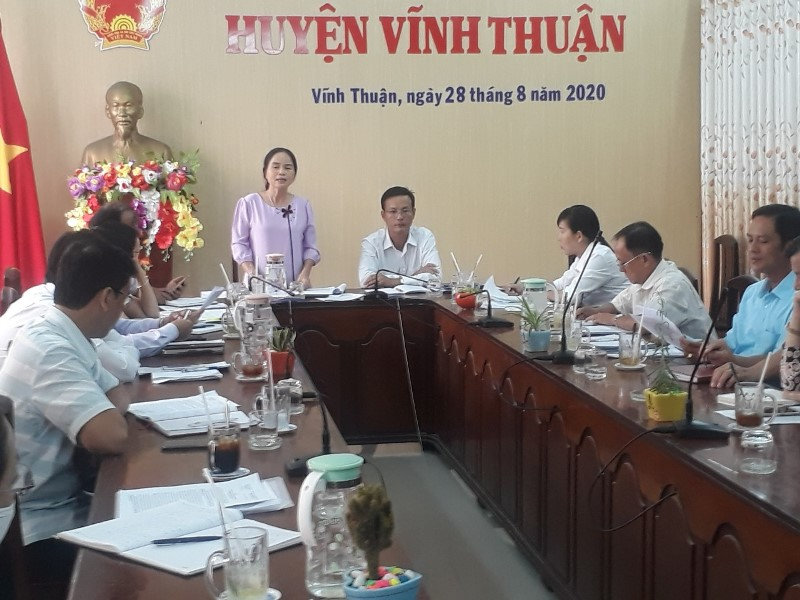 Tại buổi làm việc Đoàn được nghe đại diện các đơn vị báo cáo tình hình thực hiện cơ chế một cửa, một cửa liên thông trong giải quyết thủ tục hành chính trên địa bàn. Cụ thể: từ ngày 01/01/2019 đến nay, Bộ phận Tiếp nhận và Trả kết quả UBND xã Vĩnh Bình bắc tiếp nhận 18.066 hồ sơ, đã giải quyết đúng hạn 18.066 hồ sơ (không có hồ sơ quá hạn); Bộ phận Tiếp nhận và Trả kết quả UBND xã Vĩnh Thuận tiếp nhận 15.667 hồ sơ, đã giải quyết đúng hạn 15.665 hồ sơ (còn 02 hồ sơ chưa đến hạn); Bộ phận Tiếp nhận và Trả kết quả Văn phòng HĐND-UBND huyện tiếp nhận 8.387 hồ sơ, trong đó thuộc quyền cấp tỉnh giải quyết là 1.235 hồ sơ, thẩm quyền cấp huyện là 7.152 hồ sơ. Các hồ sơ thuộc thẩm quyền cấp huyện hiện đã giải quyết đúng hạn 7.010 hồ sơ, giải quyết quá hạn 21 hồ (sơ do người dân đóng thuế trễ) và đang trong thời gian giải quyết 121 hồ sơ. Nhìn chung, tại các đơn vị Đoàn đến giám sát đã thực hiện khá tốt công tác giải quyết thủ tục hành chính (TTHC); tỷ lệ giải quyết hồ sơ đúng hạn đạt cao; việc niêm yết công khai danh mục TTHC được thực hiện đầy đủ theo quy định kể cả phí, lệ phí và thời gian giải quyết công việc.
