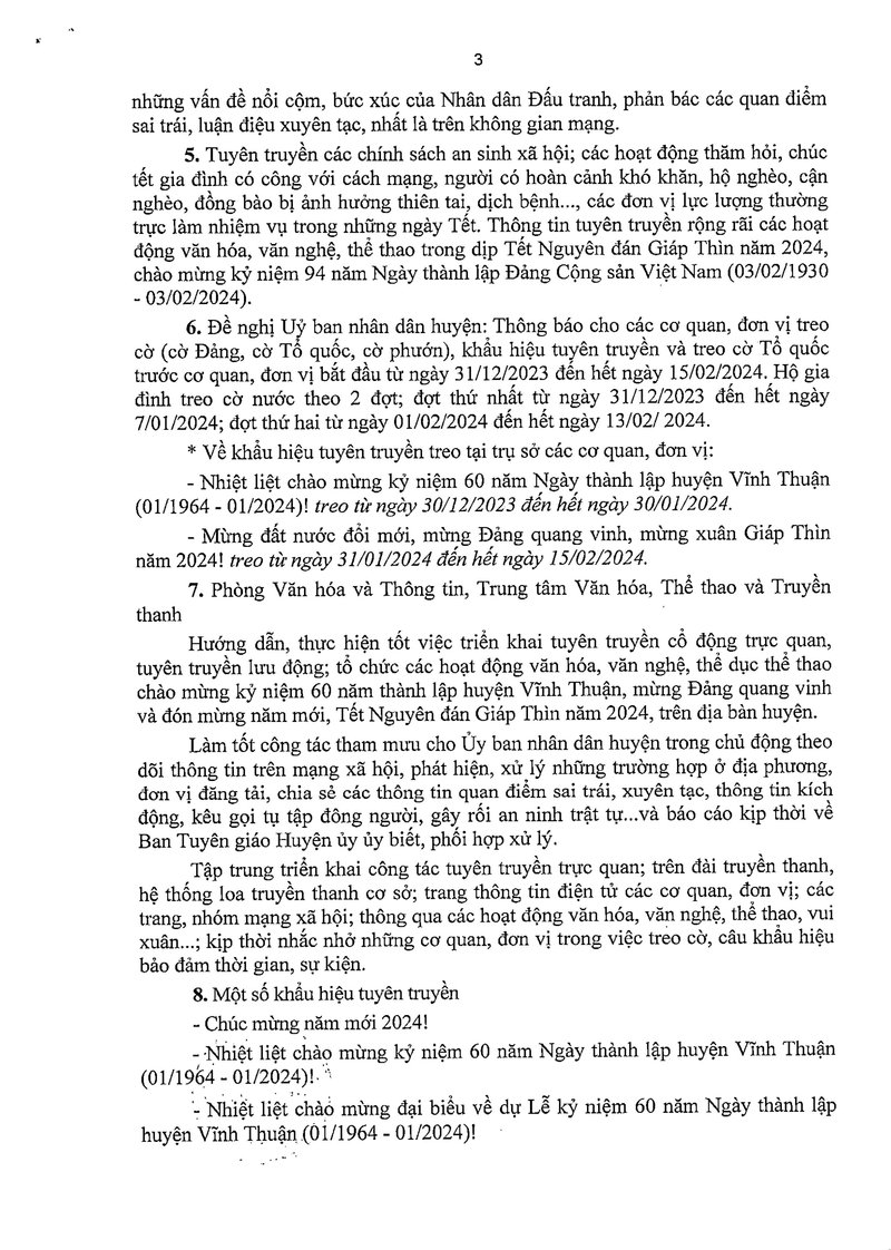 Đẩy mạnh công tác tuyên truyền, định hướng các hoạt động văn hóa-văn nghệ trong dịp kỷ niệm 60 năm thành lập huyện và Tết Giáp Thìn năm 2024